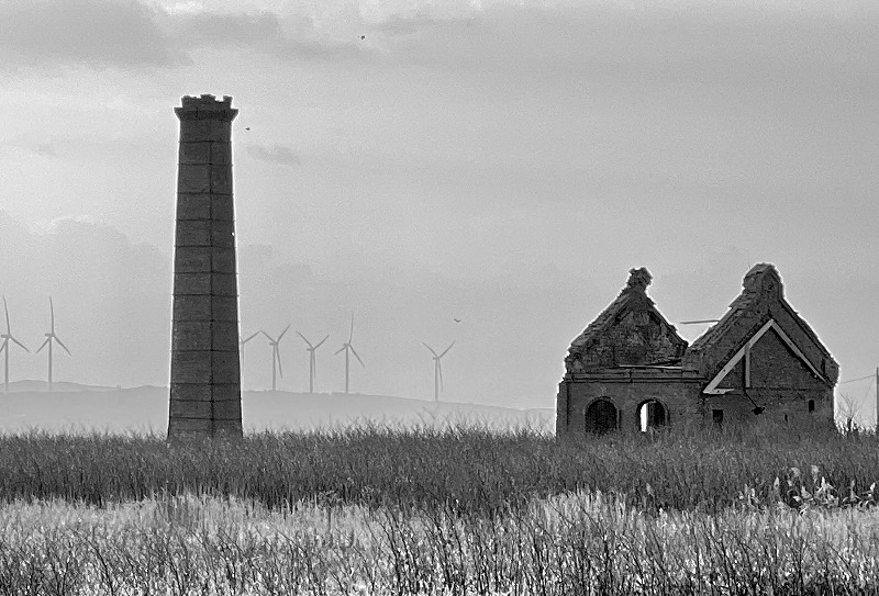 そして、この写真の奥に見えるのは、現在、各地で乱立している風力発電タービン群です。この風景を眺めていると、100年で随分様変わりしたことを受け止めざるを得ません。