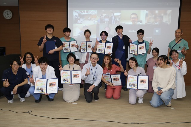 中央病院の湯野暁子院長は、研修医のとりくみに感謝し、「それぞれの場所で大いに頑張ってほしい」とエールとともに修了証を贈りました。